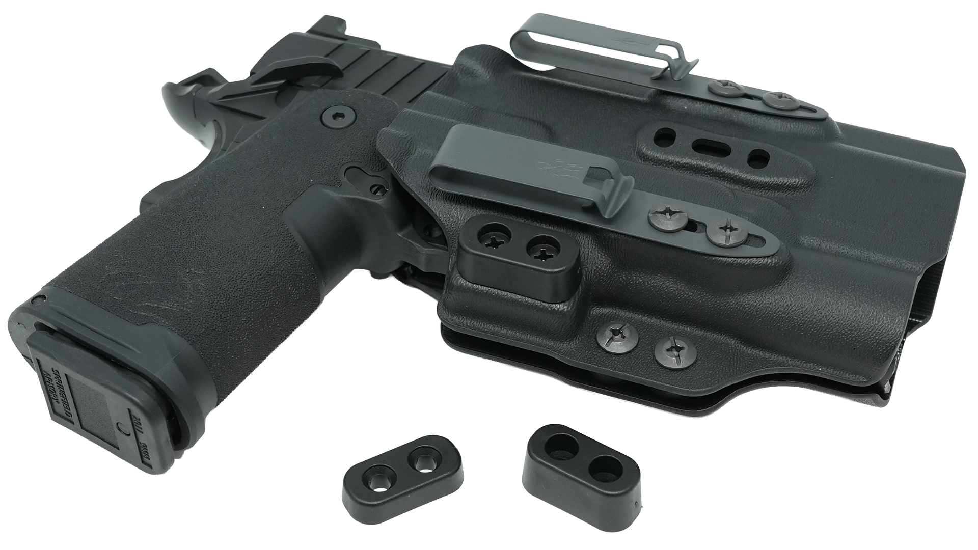 Utilizing DCC MOD 4 Universal Clips for optimal strength and ductility while maintaining a low profile. VELO LUX features overΒ an inch of ride height adjustment and increased cant range, including three possible clip locations allowing you to optimize stability and concealment.Β