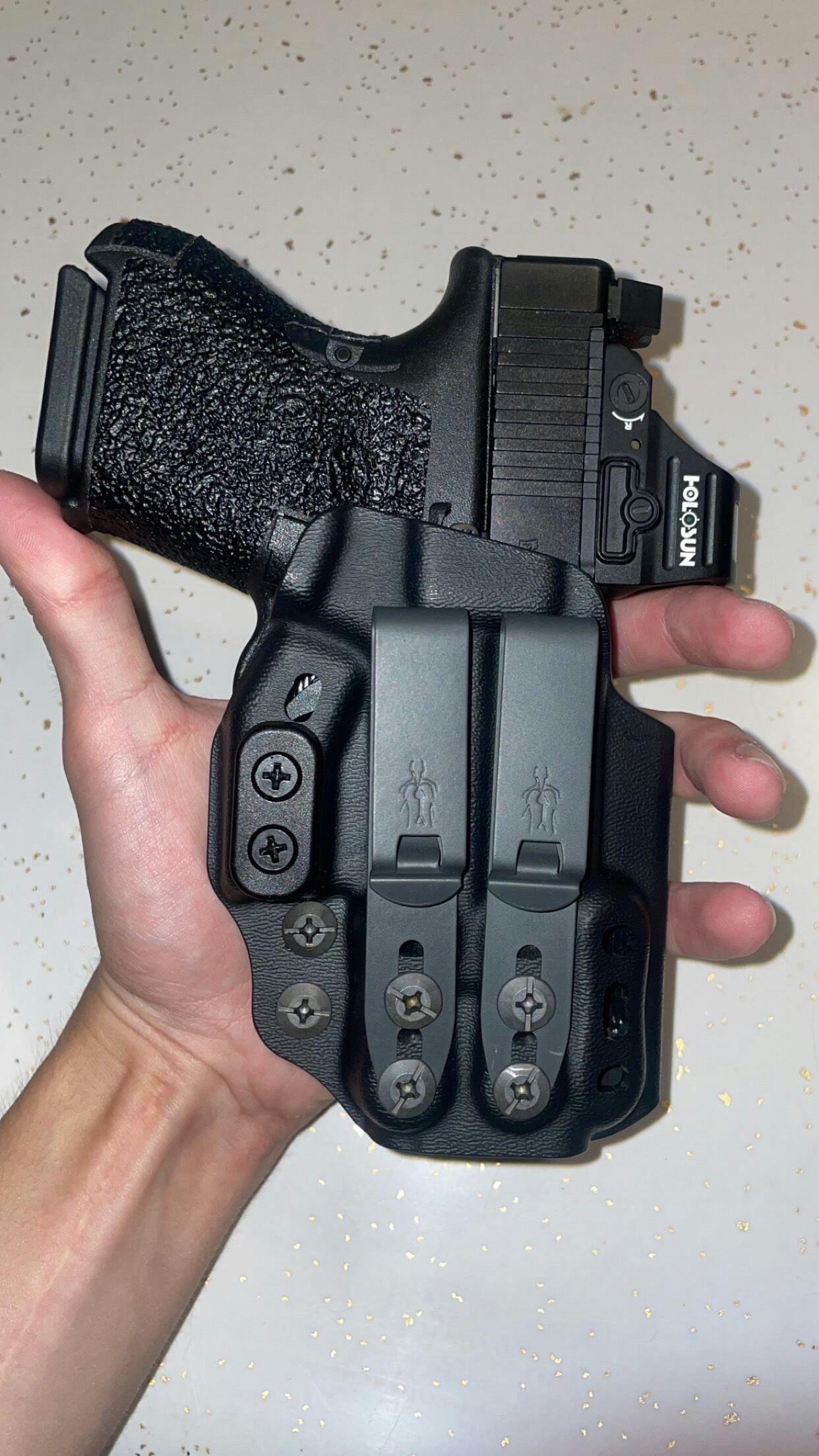 Dual retention screws enable subtle adjustments and security. Proprietary stainless steel double-posts used for retention adjustment and for easily securing the Discreet Carry Concepts MOD4 clips in a range of configurations. Made from durable, thick (0.093") thermoplastic for longevity.