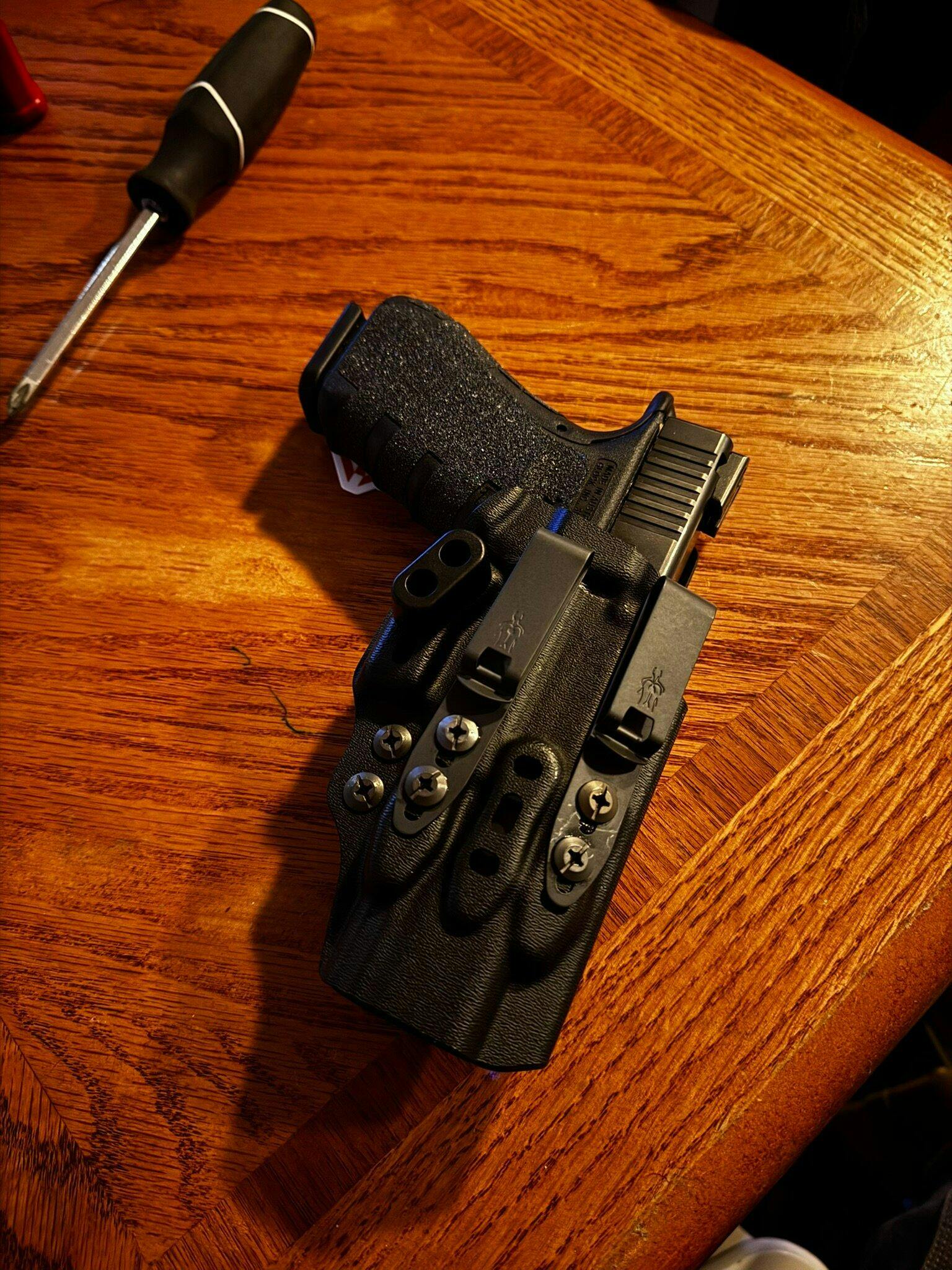 Dual retention screws enable subtle adjustments and security. Proprietary stainless steel double-posts used for retention adjustment and for easily securing the Discreet Carry Concepts MOD4 clips in a range of configurations. Made from durable, thick (0.093") thermoplastic for longevity.