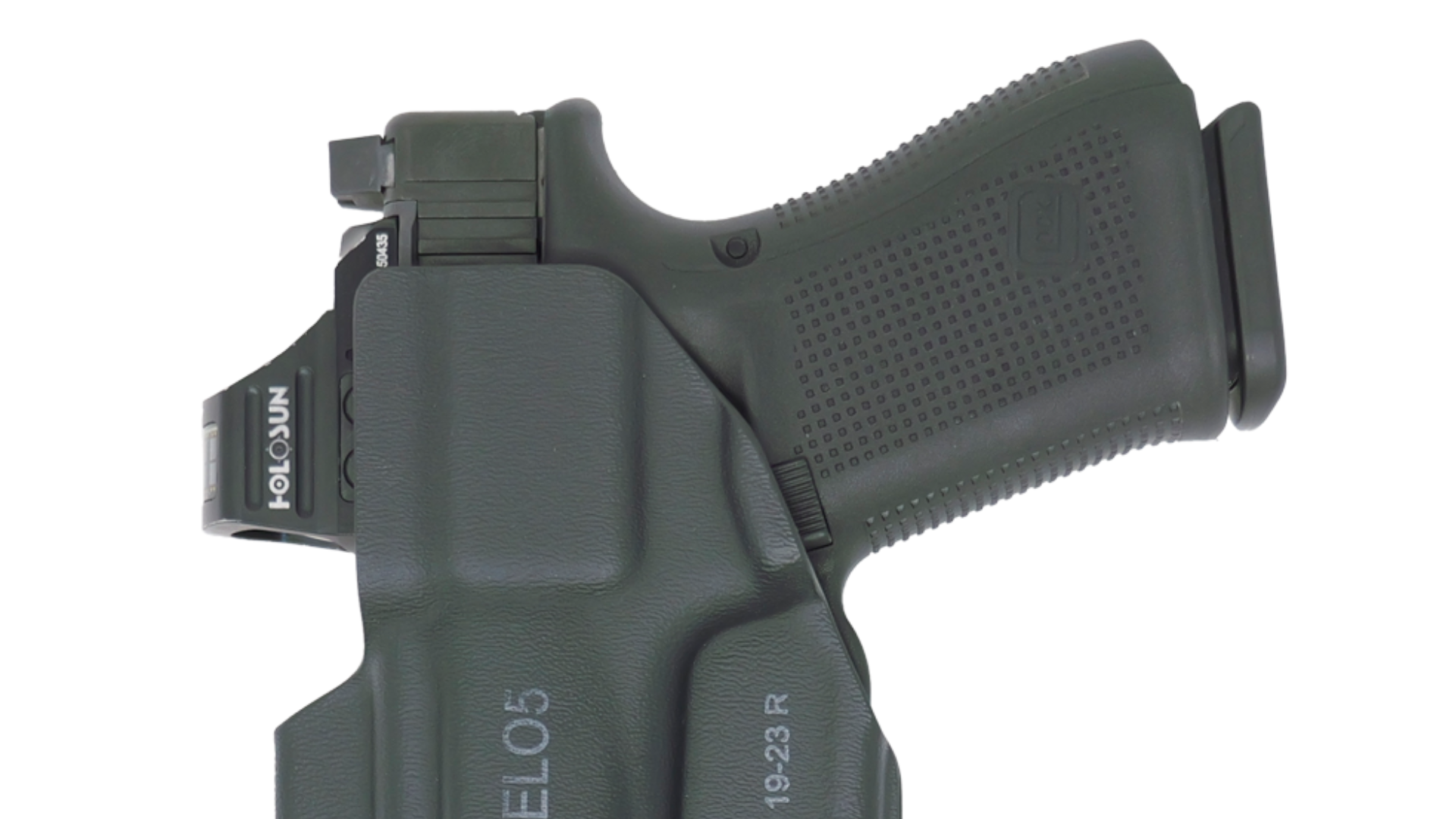 Formed for your body, organic angles and curves combine to fill voids between the gun and body for maximum comfort and concealment. An open bottom works with several different slide lengths and muzzle devices, including threaded barrels and muzzle brakes.