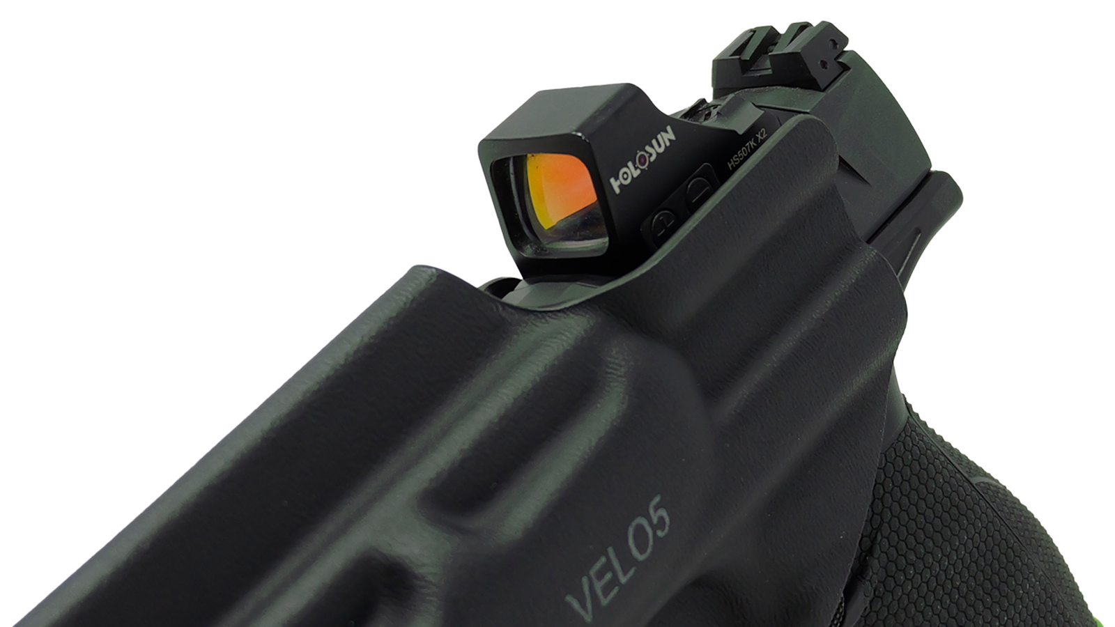 The VELO holster is designed specifically for appendix carry and ensures effortless concealment and all-day comfort. The VELO reduces the gun’s profile and is designed to make your gun disappear.