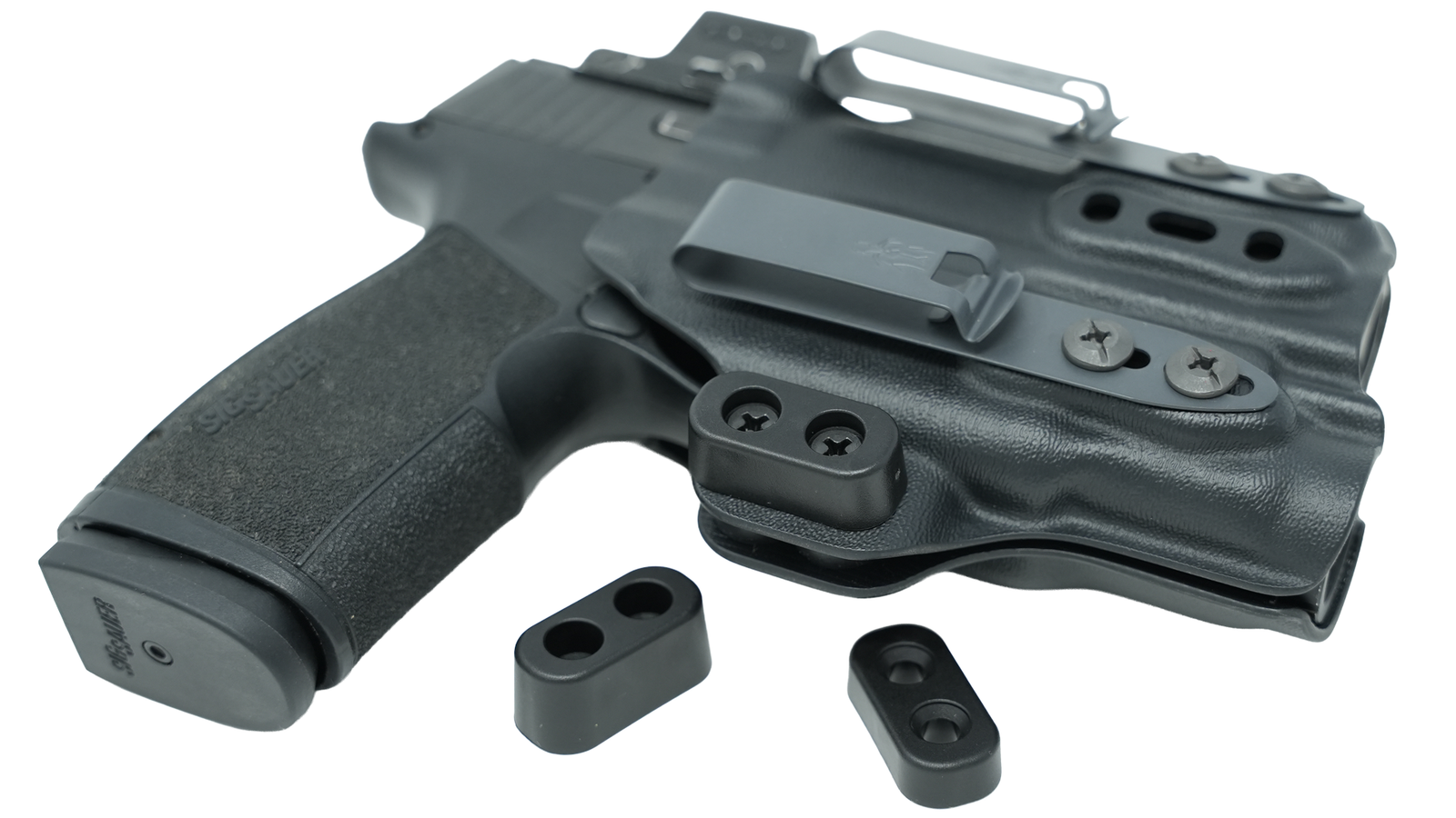 Utilizing DCC MOD 4 Universal Clips for optimal strength and ductility while maintaining a low profile. VELO LUX features over an inch of ride height adjustment and increased cant range, including three possible clip locations allowing you to optimize stability and concealment.