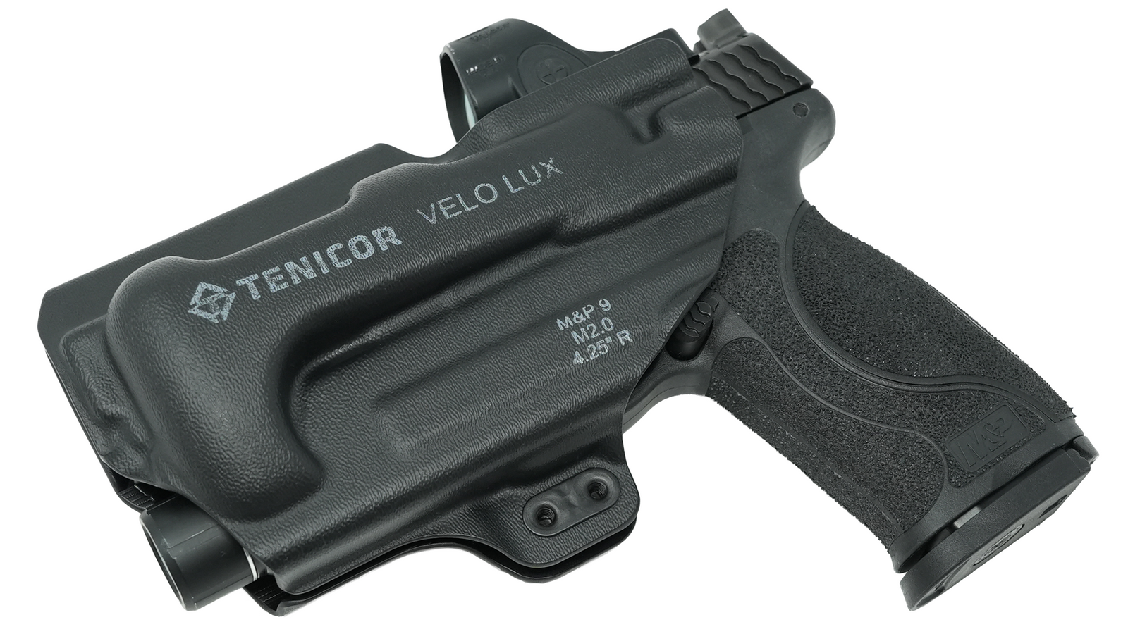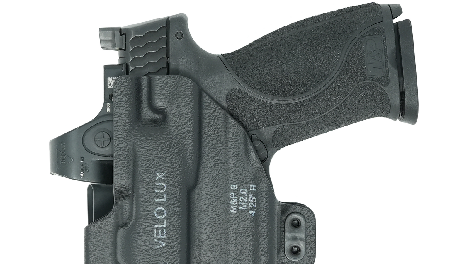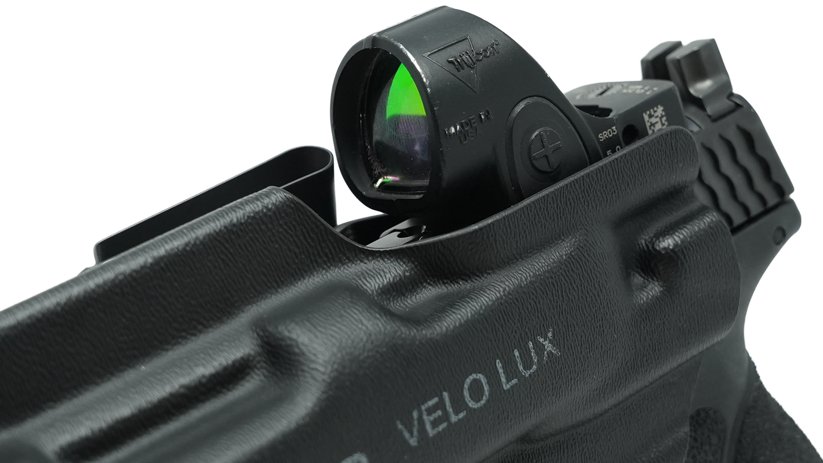 The VELO LUX holster is a purpose-built appendix carry holster for guns with weapon mounted lights. The VELO LUX reduces the gun and light's profile to ensure effortless concealment and all-day comfort.