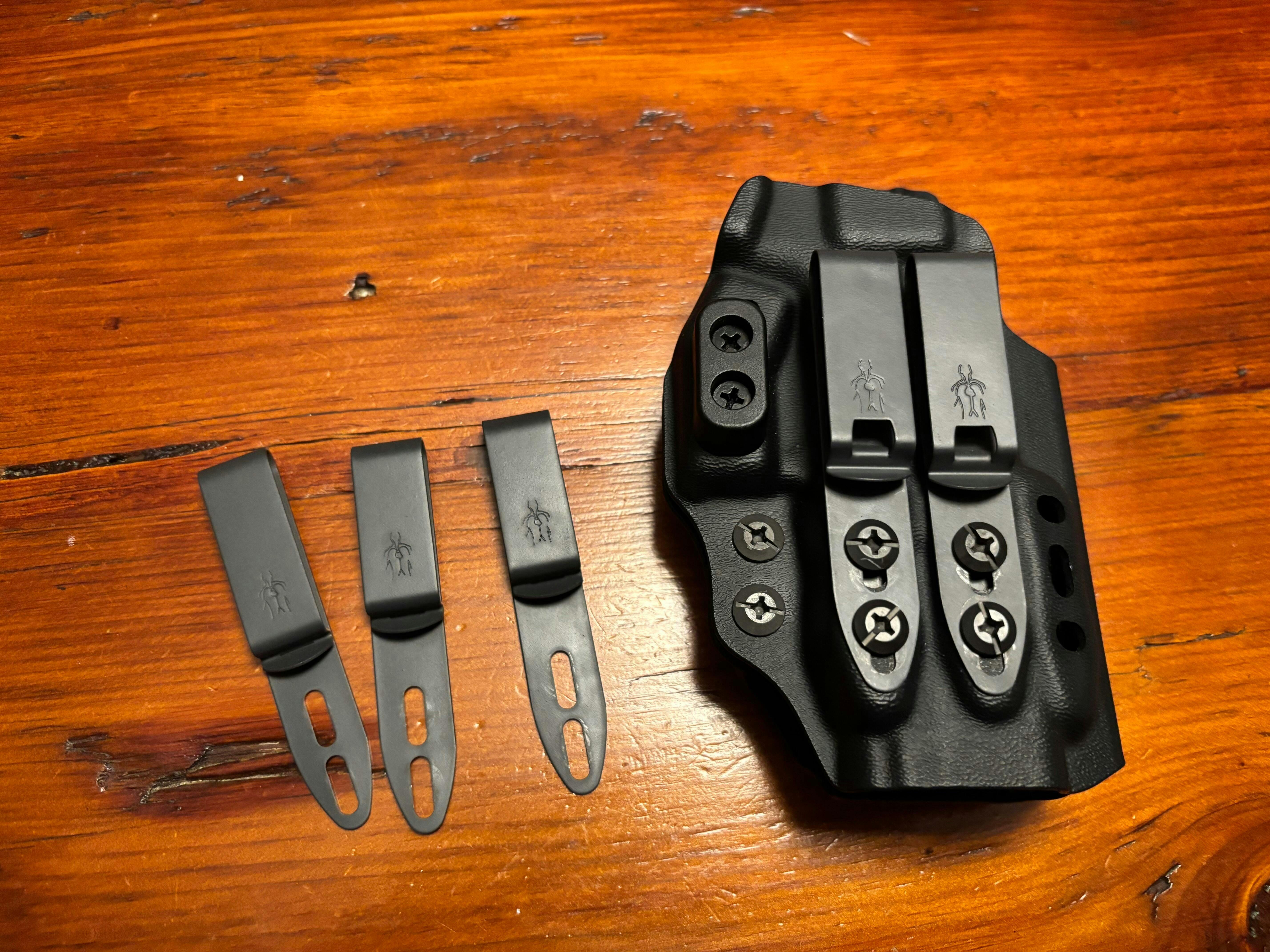 Dual retention screws enable subtle adjustments and security. Proprietary stainless steel double-posts used for retention adjustment and for easily securing the Discreet Carry Concepts MOD4 clips in a range of configurations. Made from durable, thick (0.093") thermoplastic for longevity.