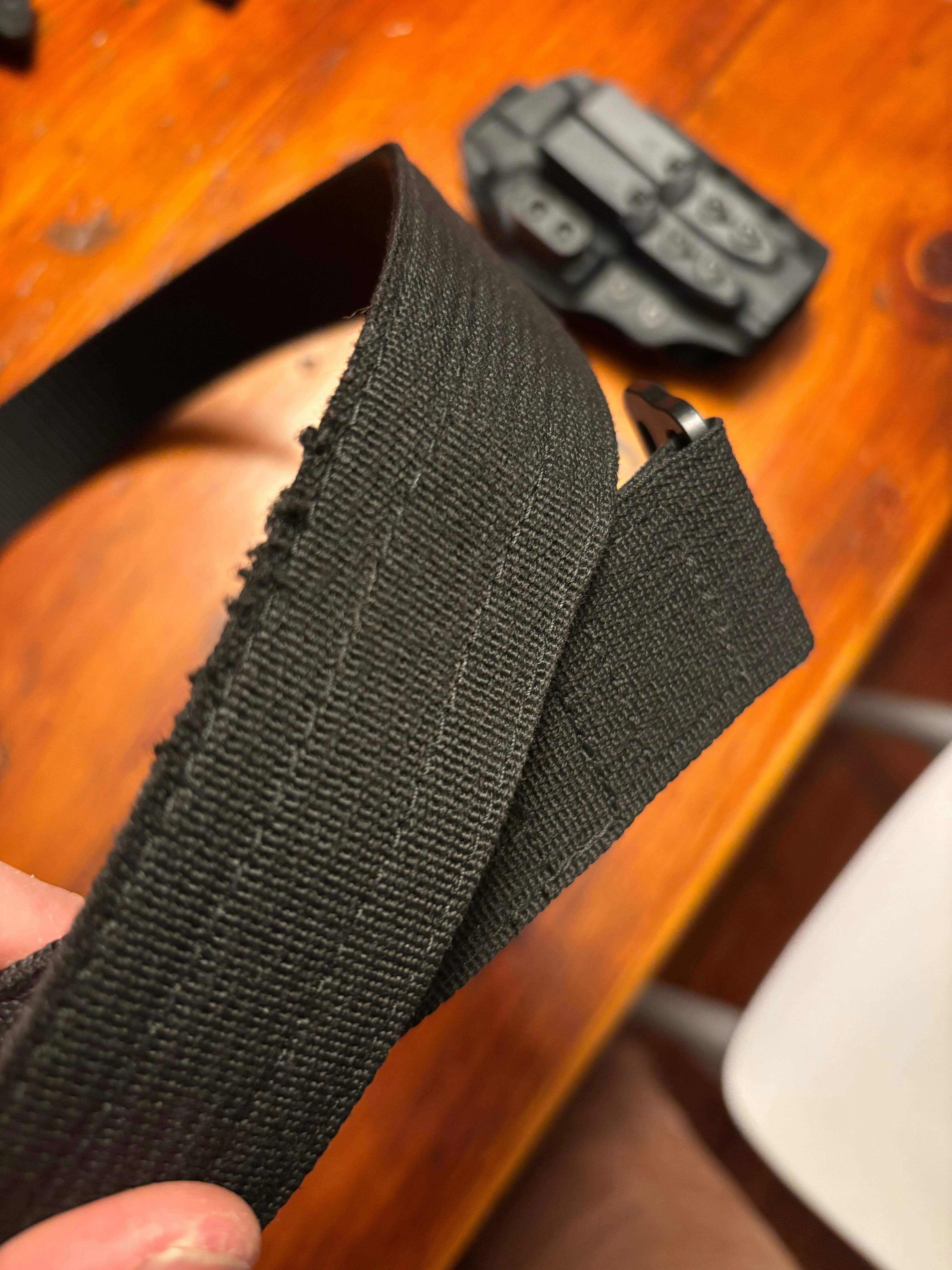 The ZERO Belt features a single layer of support webbing with a face webbing that makes a uniquely flexible and comfortable belt that is perfect in stiffness to support inside the waistband carry. Additionally, the tail end of the belt is treated with polymer, which soaks into the core of the nylon, permanently protecting it from fraying.
